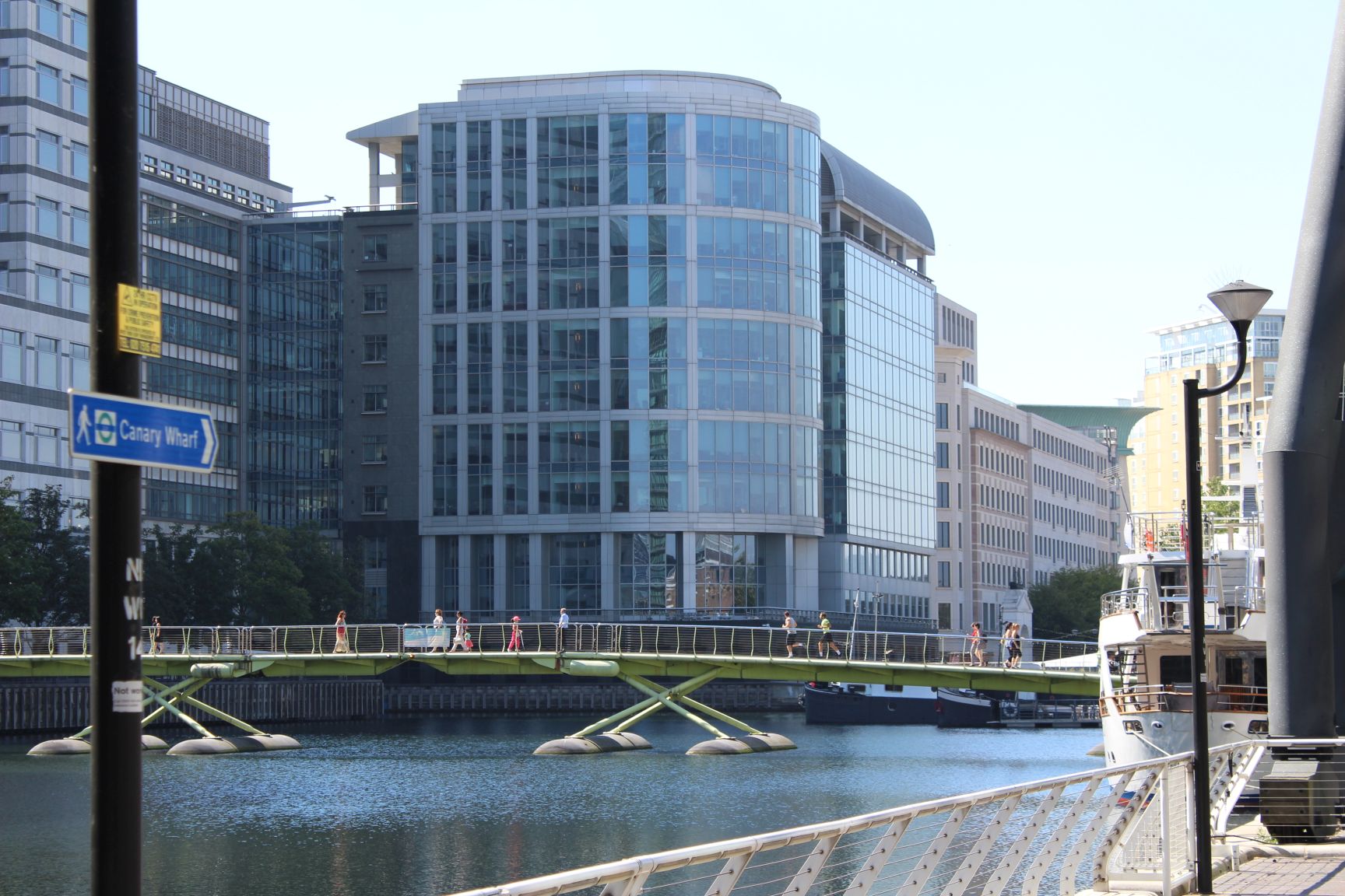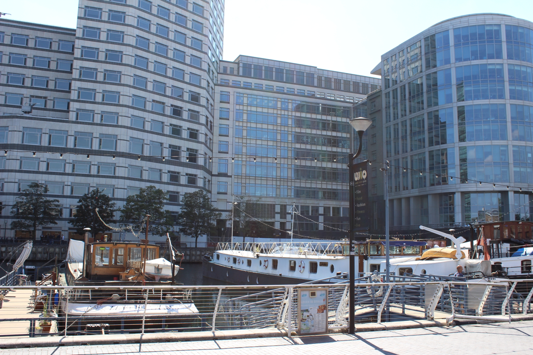 Mit der DLR geht es nun mitten in die Docklands – Haltestelle Poplar. Mit den früheren Werften hat die Gegend heute wenig zu tun. Glas und Stahl ersetzten weitgehend die alten Werftanlagen- und Häuser. Büros, Hotels und teure Shopping-Komplexe prägen das Bild des Viertels – aber auch schicke und schnieke Restaurants und Bars sind hier zu finden. Was geblieben ist, sind die vielen kleinen Kanäle mit einigen kleinere Schiffen und Brücken, die die Gegend prägen und so attraktiv machen.