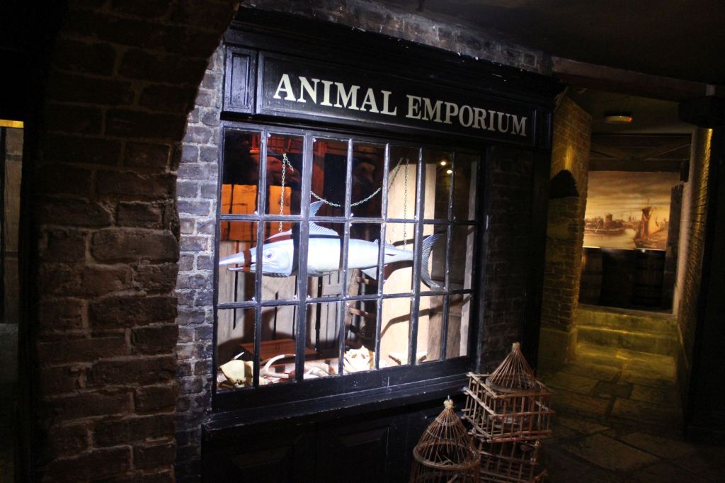 Als erstes führt uns der Weg in das Museum of the Docklands (hier ein ausführlicher Bericht). Wie viele öffentliche Museen ist auch dieses kostenlos. Und wie bei anderen öffentlichen Museen in England ist auch das Museum of the Docklands extrem gut und aufwändig gestaltet und gibt einem einen tiefen Einblick in die Geschichte der Docklands und somit auch in die Geschichte des Londoner Eastends. Besonders spannend ist der Nachbau der engen Gassen der Gegend zu Beginn des 20. Jahrhunderts. Mit viel Liebe zum Detail wurden hier die Gassen, aber auch Läden oder Pubs nachgebaut. Man erhält einen spannenden Eindruck darüber, wie es nach Einbruch der Dämmerung dort gewesen sein muss. Das Museum ist eine absolute Empfehlung. Es ist spannend gemacht und erzählt die Geschichte der Themse mit Geschichten von Händlern, Piraten und dem Einzug des (Finanz-)Kapitalismus in der heutigen Zeit, ist sehr aufwändig gestaltet und man kann wirklich einige Stunden dort verbringen, ohne dass es langweilig wird. Wenn man mit Kindern unterwegs ist, wird die Children´s Gallery ein guter Anlaufpunkt sein – ein eigener Raum zum Spielen und entdecken.