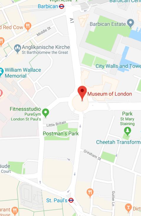 Adresse: Museum of London, 150 London Wall , EC2Y5HN