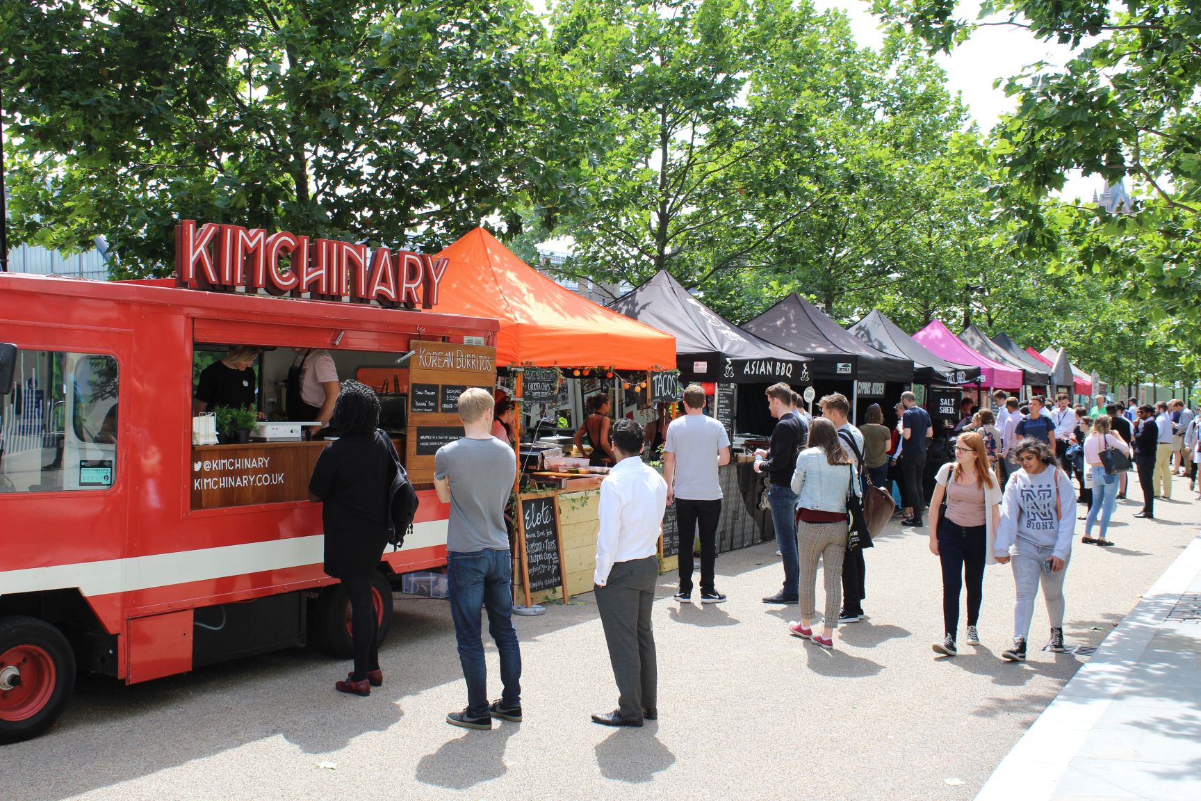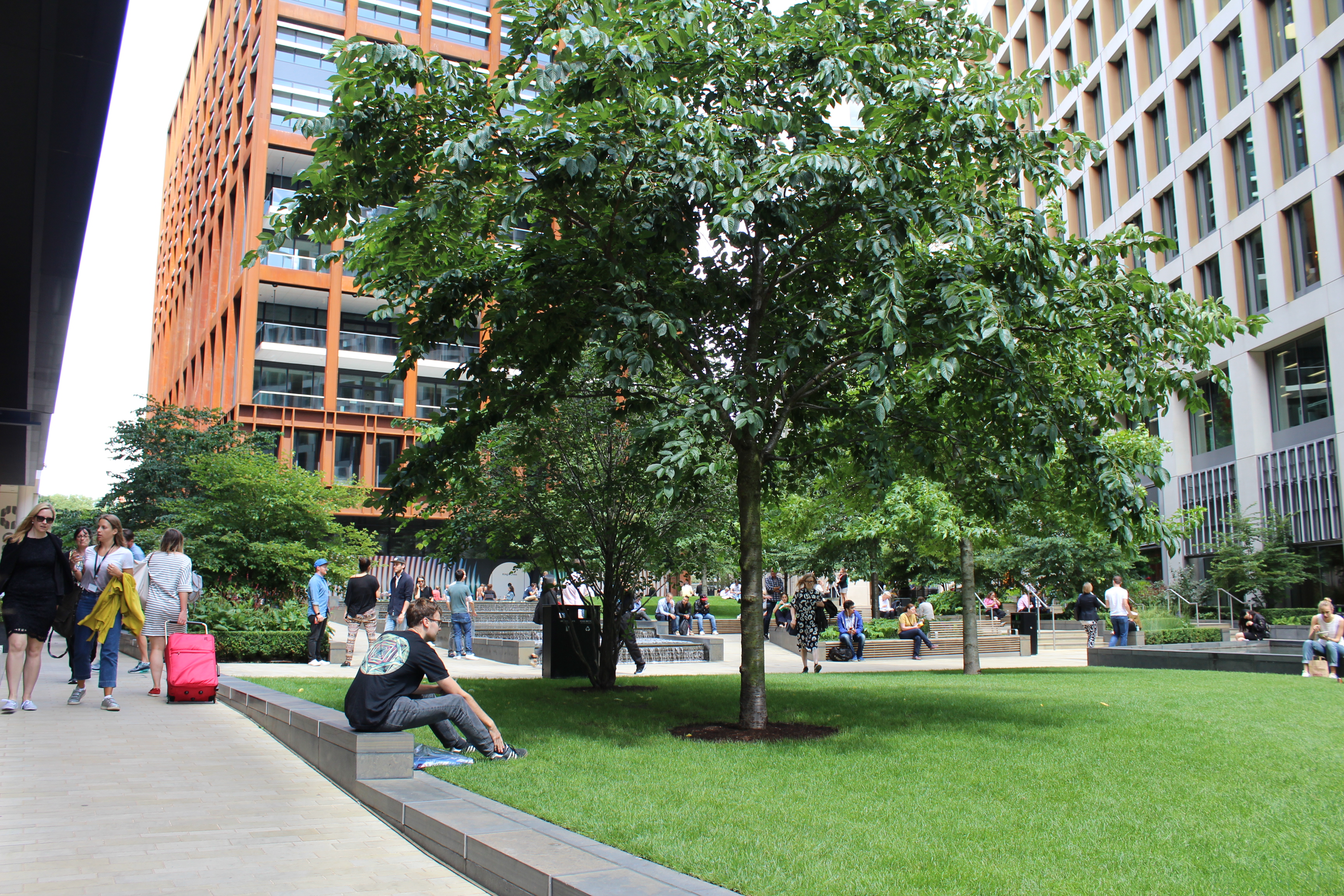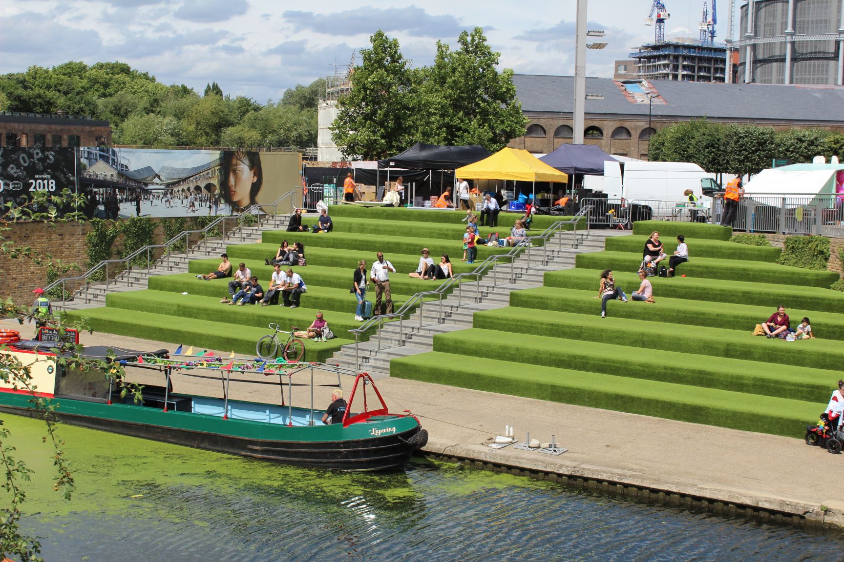 Nordwärts über den King´s Boulevard kommt man am Pancras Square vorbei. Hier kann man sich gut unter viele „Einheimische“ – oder doch zumindest dort arbeitende Menschen – mischen und in dem Park die Snacks aus den angrenzenden (Fast) Food Läden (von Sushi bis M&S Food). Regelmäßig findet man auch hier Streetfood-Stände, die von Kim-chi über Japanische Leckereien, bis hin zu zyprischem „slow cooked lamb kebab“ einiges zu bieten haben und im Normalfall auch nicht den Geldbeutel direkt austrocknen.
