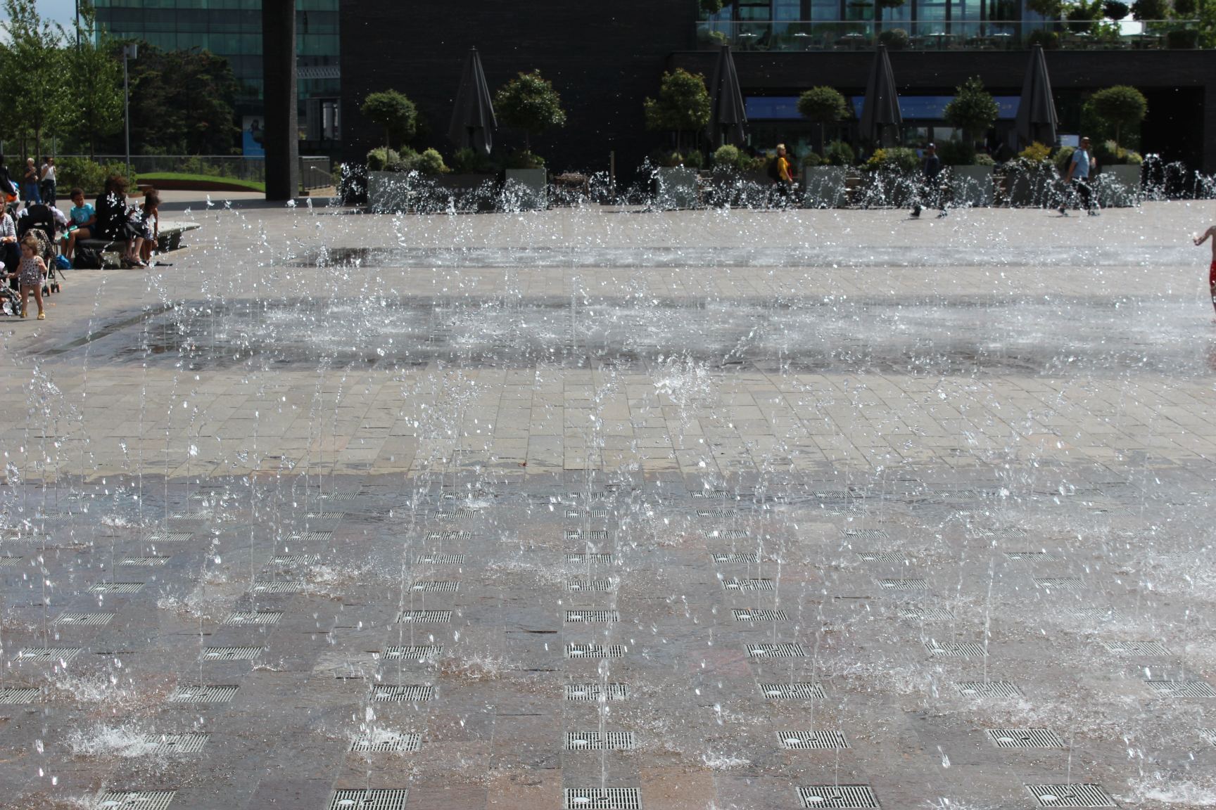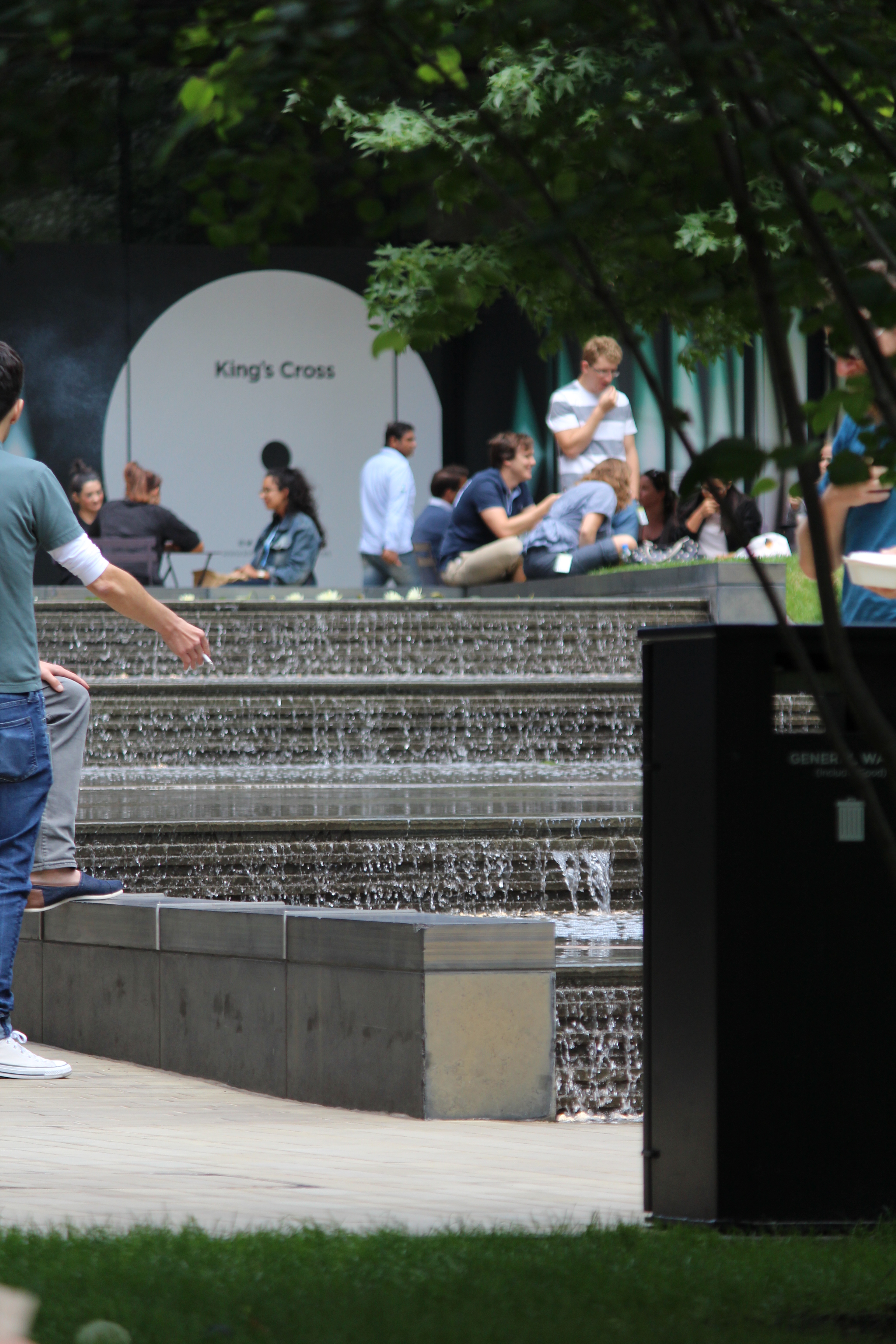 Weiter geht´s zum zentralen Platz der Gegend, dem Granary Square. Von hier aus hat man wirklich viele Möglichkeiten. Sehr entspannt ist es, sich an das begrünte Ufer des Regent´s Canal zu setzen und etwa einem Cocktail zu schlürfen. Ebenso entspannt (vor allem für Kinder) ist im Sommer die Springbrunnenanlage, die den halben Platz einnimmt.