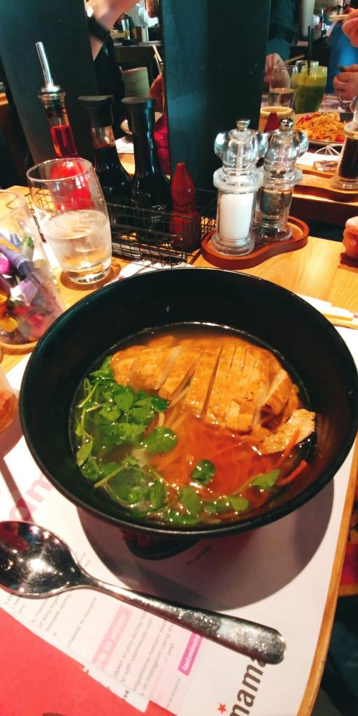 Das Wichtigste allerdings ist ja das Essen. Die Karte ufert nicht unfassbar weit aus, aber man findet auf jeden Fall einige unterschiedliche Gerichte. Ob nun verschiedene Tepanaki-Gerichte (auf dem heißen Stein gebraten) oder einige Currys. Alle Gerichte werden in der offenen Küche – typisch asiatisch – mit vielen frischen Zutaten zubereitet. Wir haben uns mehrheitlich für die Ramen-Nudeln entschieden. Ich muss sagen, ich war wirklich begeistert. Tolle Nudeln in echt leckerem Sud und verschiedenen Zutaten – je nach Gusto. Besonders gut hat mir gefallen, dass man sich unter anderem die Ramen entweder selber zusammenstellen konnte, oder die Möglichkeit hatte, auf vorgeschlagene Kombinationen aus Nudeln, Sud und weiteren Zutaten zurückzugreifen.