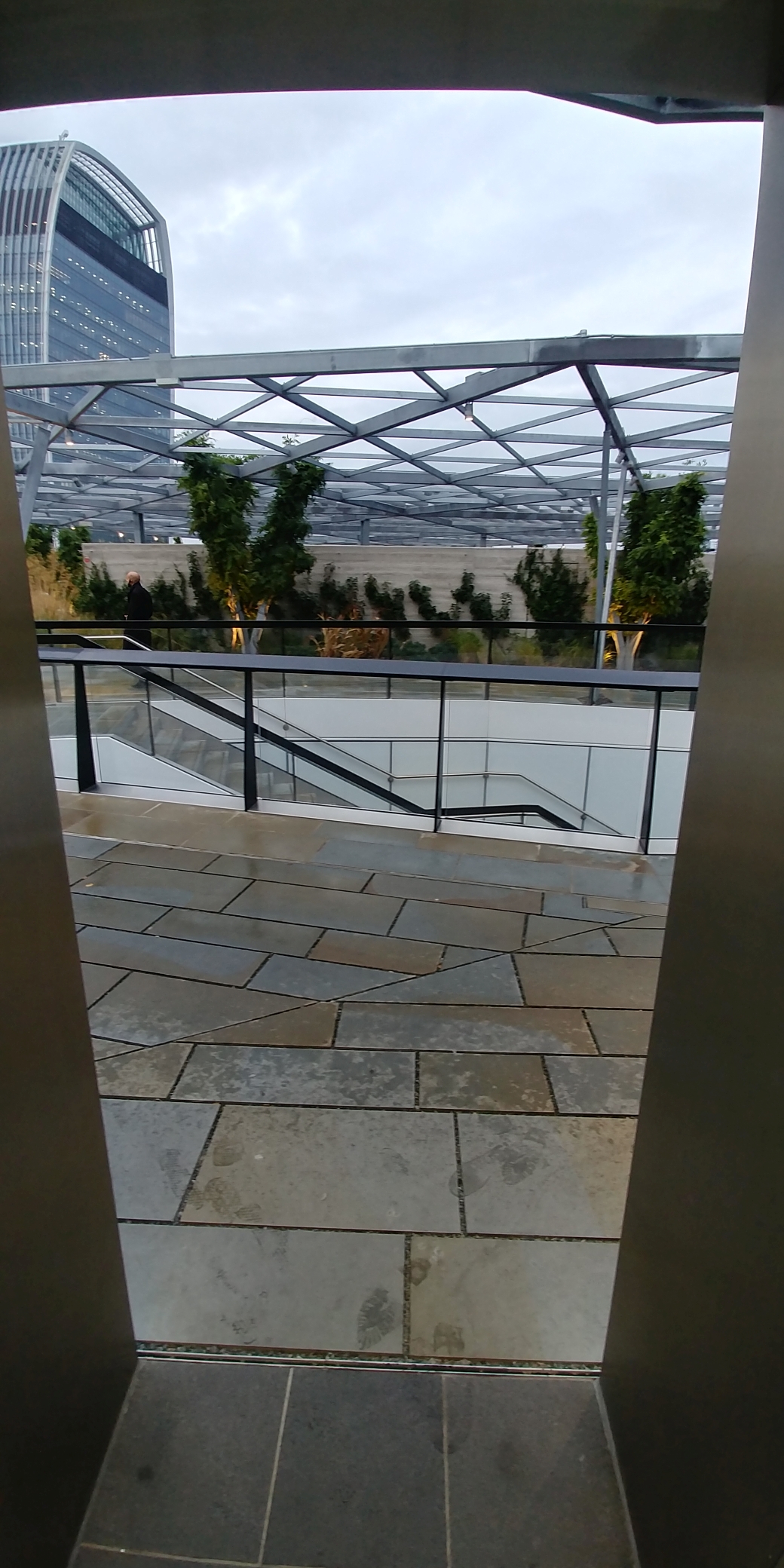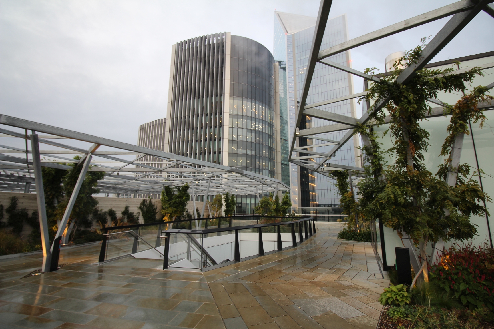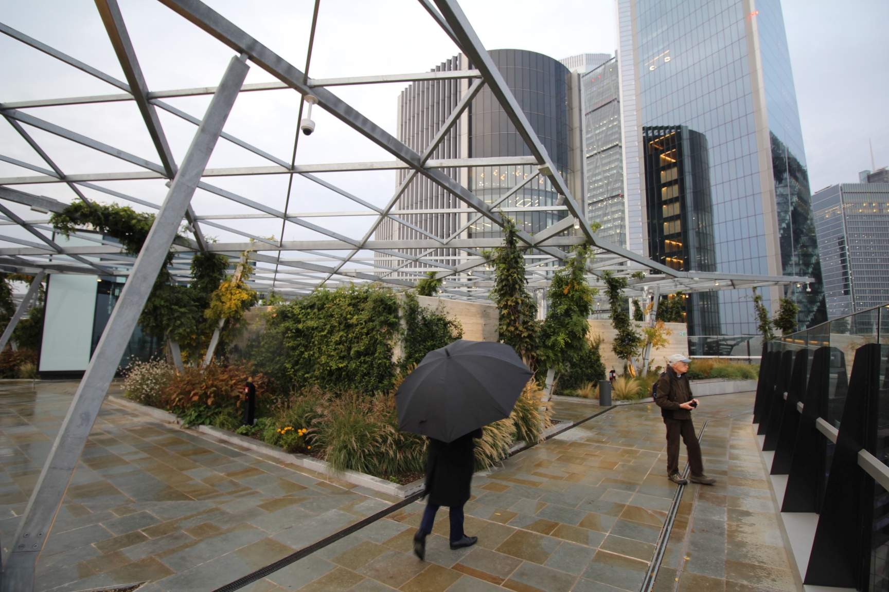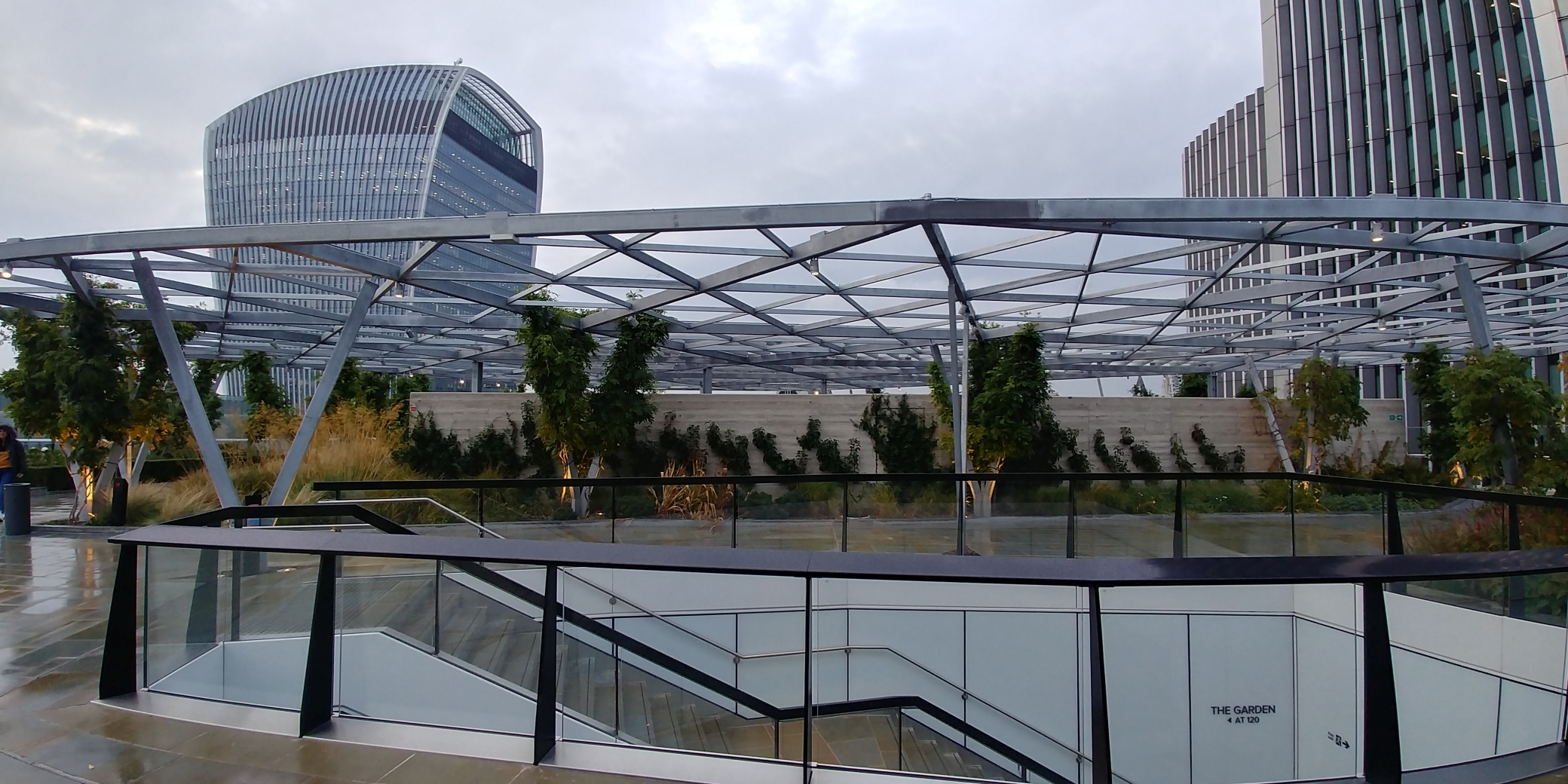 Die Terrasse ist zwar nicht so hoch, wie etwa das 200 Meter entfernte Sky Garden, jedoch ist sie ähnlich einem Park angelegt – mit vielen Pflanzen, Beeten und einem kleinen Wasserlauf. Hier zu sitzen und zu entspannen ist wahrscheinlich vor Allem im Sommer ein tolles Erlebnis. Die Beete sind aufwändig bepflanzt und toll angelegt. Die ganze Terrasse ist gut unterteilt und so konzipiert, dass man nicht das Gefühl hat, auf einer riesigen freien Fläche zu stehen, sondern immer eine Nische für sich finden kann.