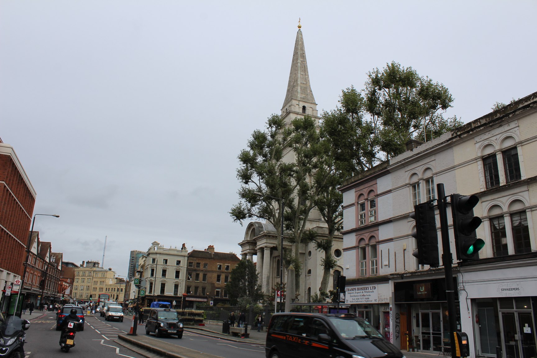 Natürlich kann der Old Spitalfield´s Market nicht mit Camden auf der einen Seite oder dem Borough Market auf der anderen Seite mithalten. Das muss er aber auch nicht. Er bildet das Tor zur Brick Lane und in dieser Kombination muss man wahrscheinlich die ganze Gegend sehen. Der Markt macht neugierig auf mehr, ist toll, um sich eine Stunde dort aufzuhalten und dann weiter zu ziehen ins In-Viertel Shoreditch mit seinen kleinen Läden, seinen Künstlern und seiner (Spray-)Kunst, seinen Märkten und seiner Atmosphäre. Aus diesem Grund steige ich auch meist an der Haltestelle Aldgate East aus und nehme in nördlicher Richtung die Commercial Street. Der Weg von hier aus ist schon schick. Vorbei am Petticoat Lane Market (Klamotten, So. – Fr. 09-16 Uhr, hat aber auch bereits bessere Zeiten gesehen… ), am Tatort des 4. Jack The Ripper Mordes vorbei (Commercial Street, Ecke White´s Row), genau so wie an der eindrucksvollen Christ Church Spitalfield.