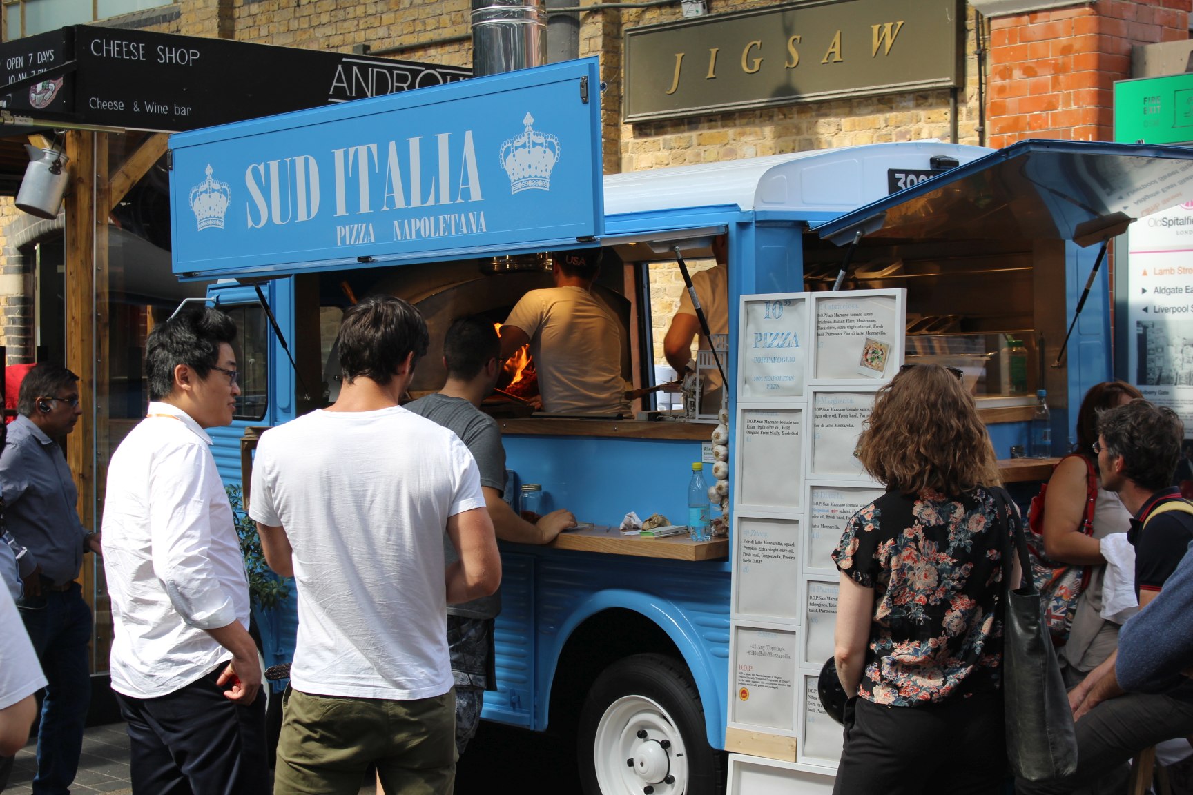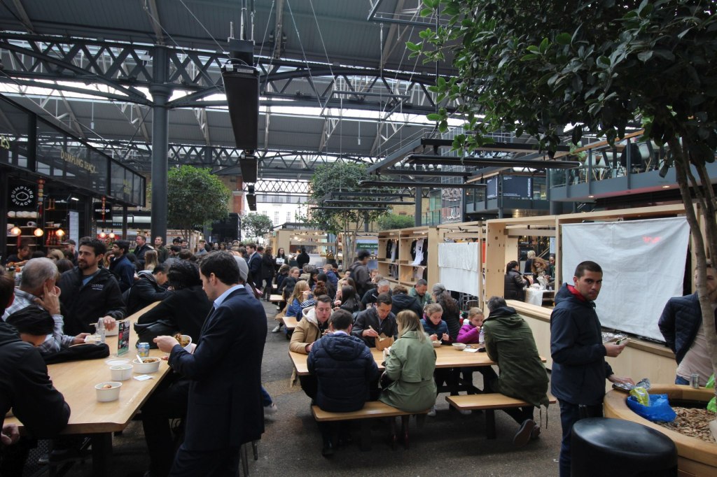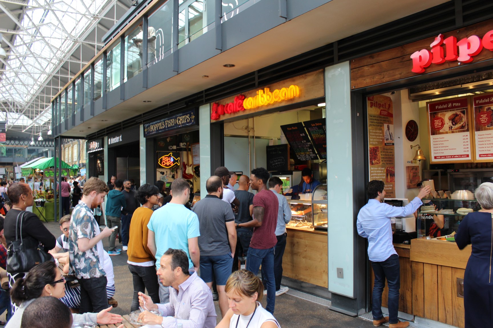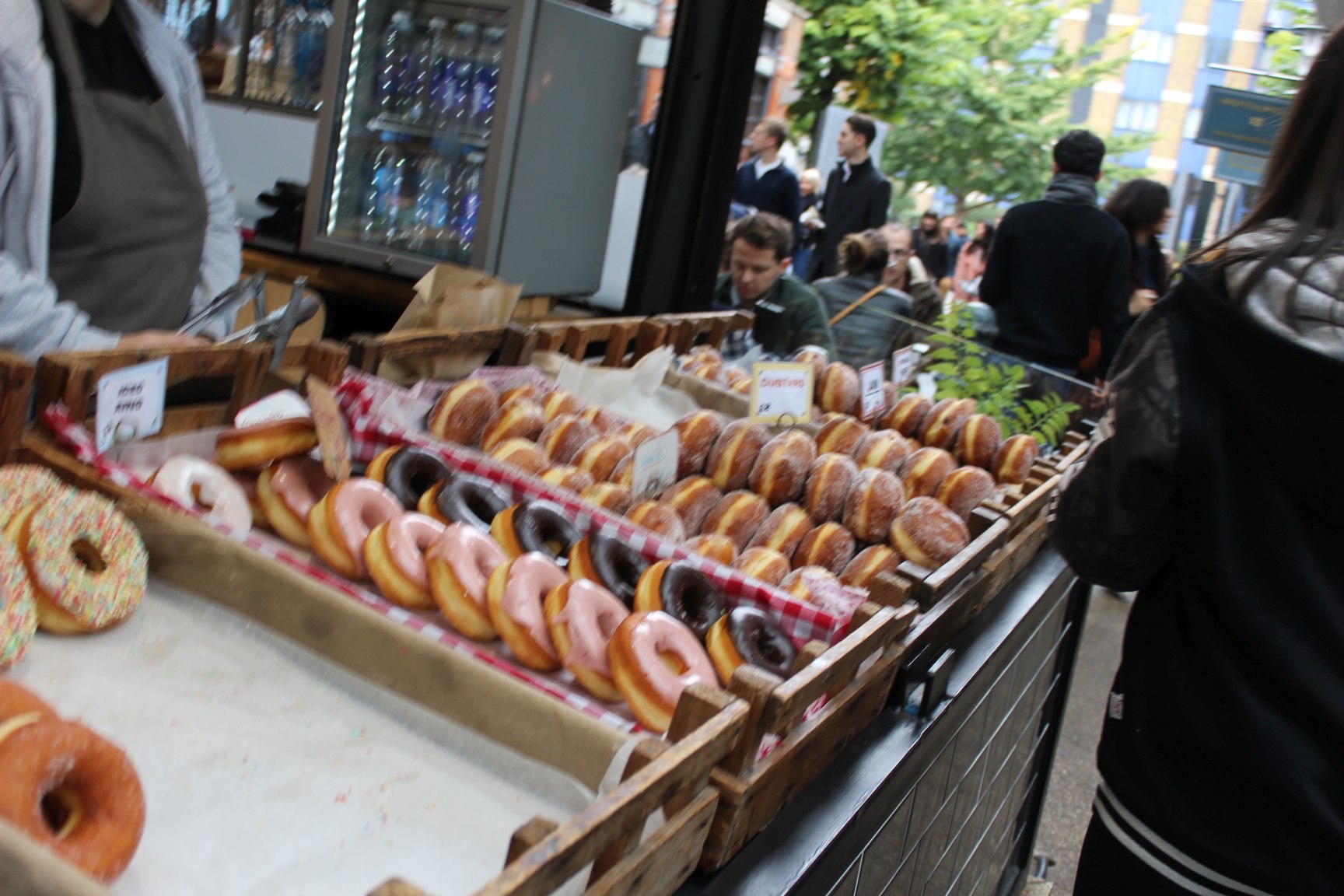 Natürlich findet ihr auch jede Menge zu Essen auf dem Markt. Es gibt tolle Kuchen, einen Außenverkauf von Poppies Fish&Chips (einer meiner Favoriten!), internationale Gerichte verschiedenster Couleur. Und das alles im Streetfood – Ambiente. Ihr habt aber auch die Wahl, eines der zahlreichen Restaurants zu besuchen. Einige haben wirklich schöne Terrassen, von denen man einen wirklich tollen Blick über den Markt hat. Egal ob Burger, Steak oder Sushi – das Richtige für jeden ist dabei.