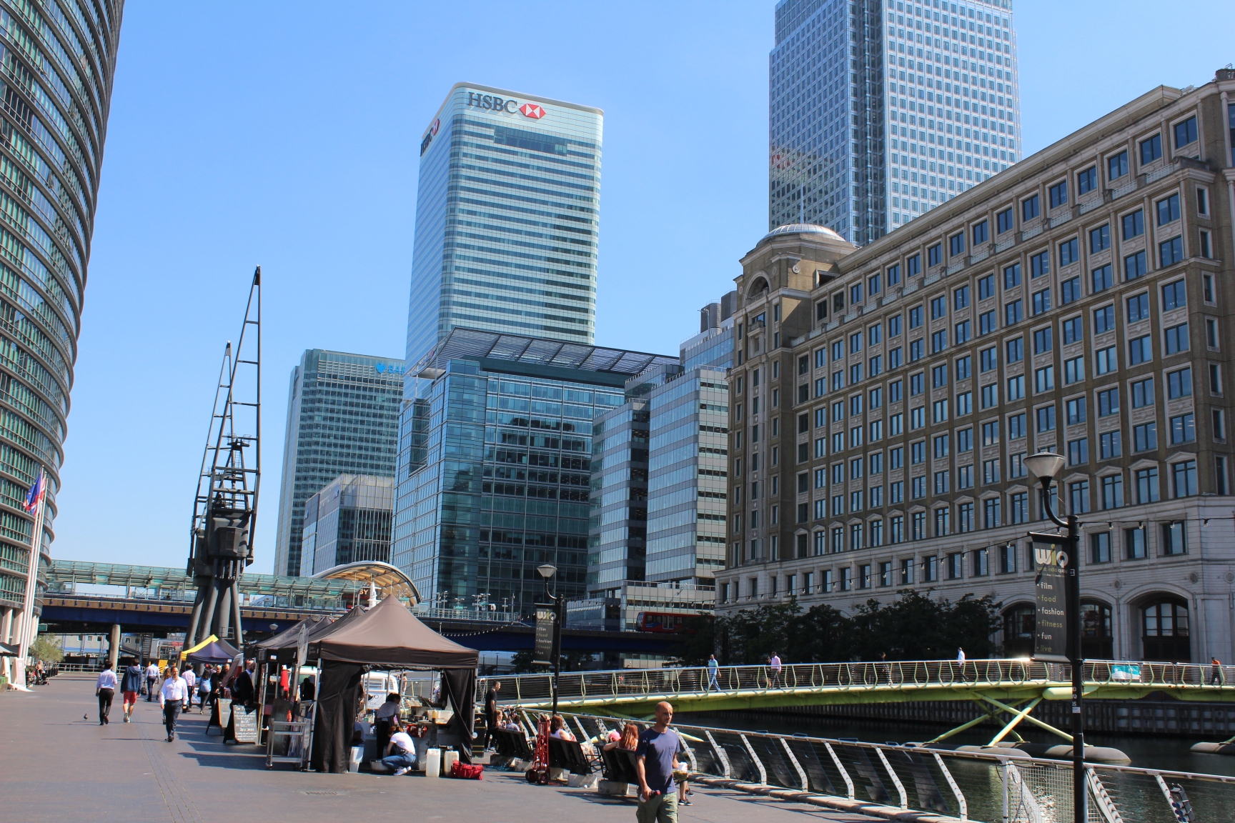 Heute sind die Docklands und da speziell der Stadtteil Canary Wharf der Ort von Big Money und Investment. Allein deshalb lohnt sich bereits ein Besuch. Kommt ihr mit der Jubilee Line an, so nutzt ihr die eindrucksvolle U-Bahn-Haltestelle „Canary Wharf„. Sie wurde von Sir Norman Foster entworfen und 1992 eingeweiht. Schon damals wollte man dem immer größeren Zulauf in den neuen Finanzdistrikt Herr werden. Doch auch die Jubilee Line stößt an ihre Grenzen. Mit unterirdischen Ladenzeilen sind die Dockland Light Railway – Stationen Heron Quays und die gleichnamige Canary Wharf – Station verbunden. Von hier aus lässt sich ein guter Abstecher in das Wolkenkratzerviertel Londons machen. Teure Boutiquen und ebensolche Restaurants finden sich hier genauso, wie schöne Terrassen am Kanalsystem der ehemaligen London Docks. Wenn man schon beim Museum of London Docklands ist, sollte man auf jeden Fall ein wenig Zeit für den Rest des Viertels einrechnen.