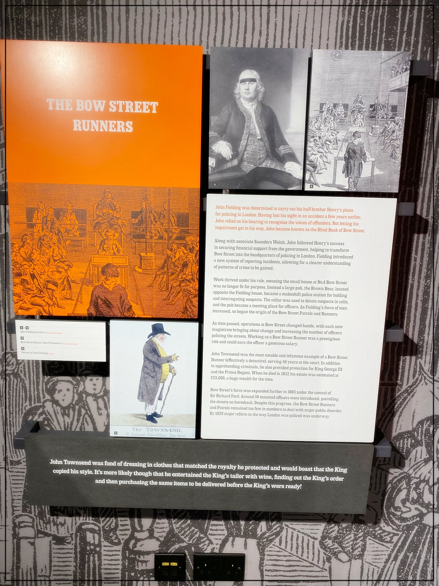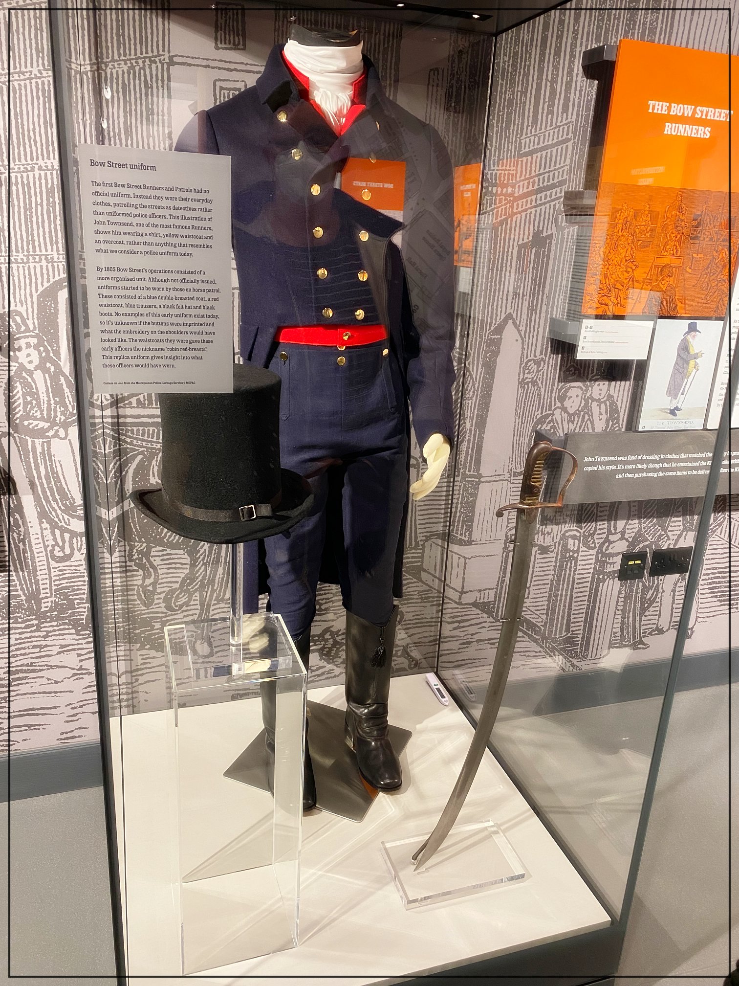 Angefangen wird bei den Bow Street Runners – nur mit Pfeifen und Stöcken bewaffneten Zivilisten, die rund um Covent Garden von Beginn des 18. Jahrhunderts an versuchten, für Ruhe in den Straßen zu sorgen. Weiter geht die Geschichte über die Eingliederung in die Metropolitan Police 1839, bis hin zum Schließen der Wache im Jahr 1992. Insgesamt werden 111 Jahre Geschichte dargestellt – immer aber an konkreten Beispielen und einzelnen Personen.