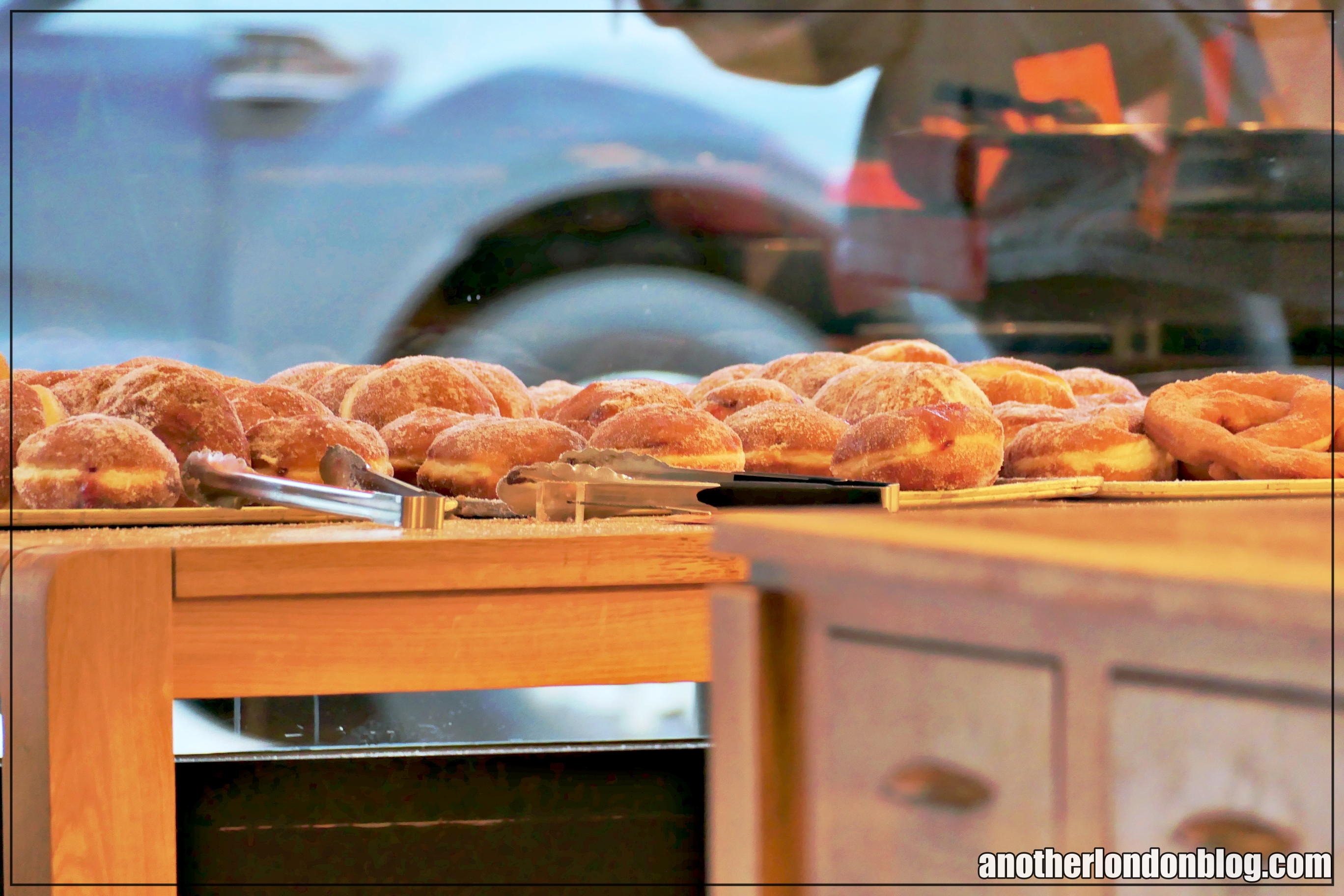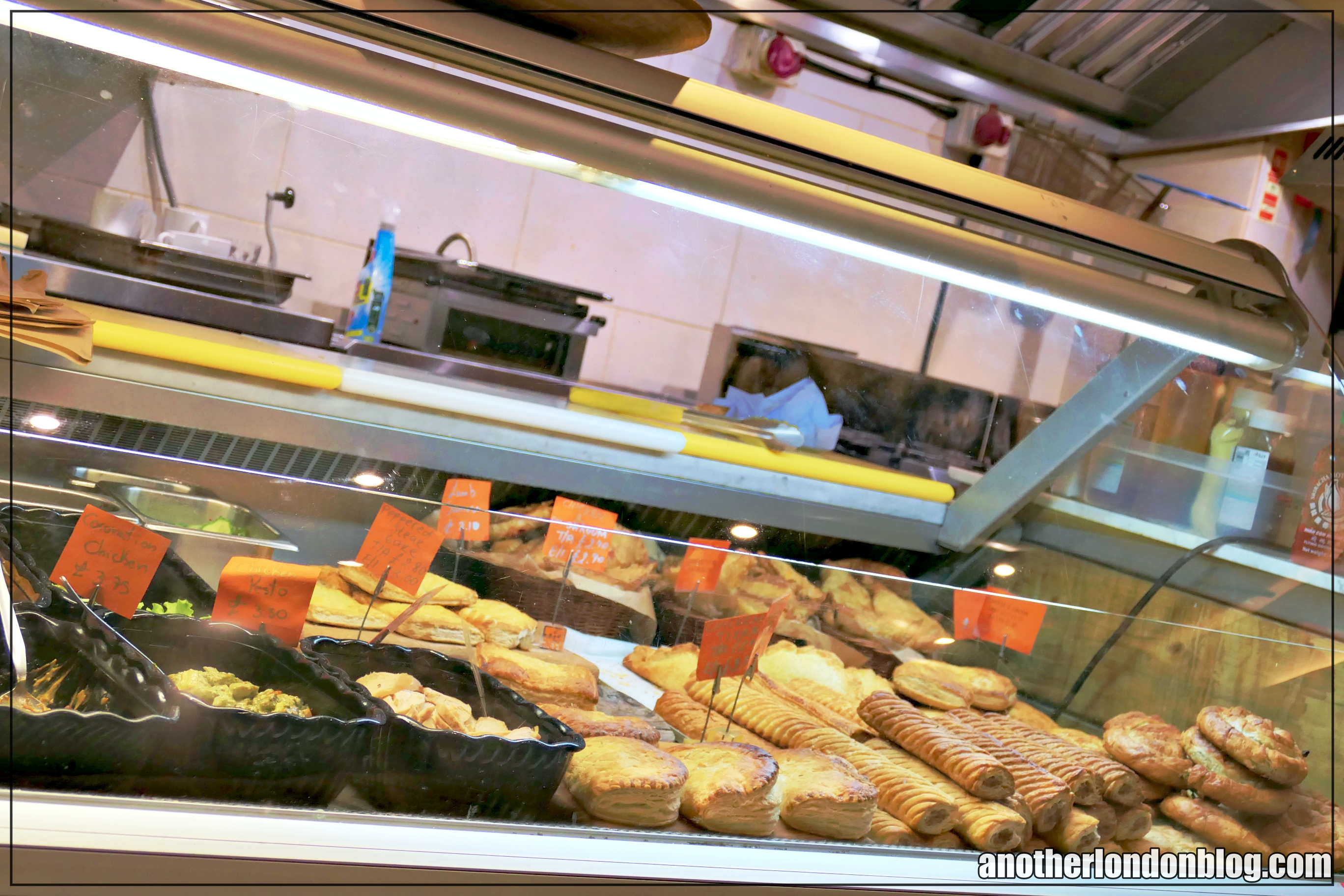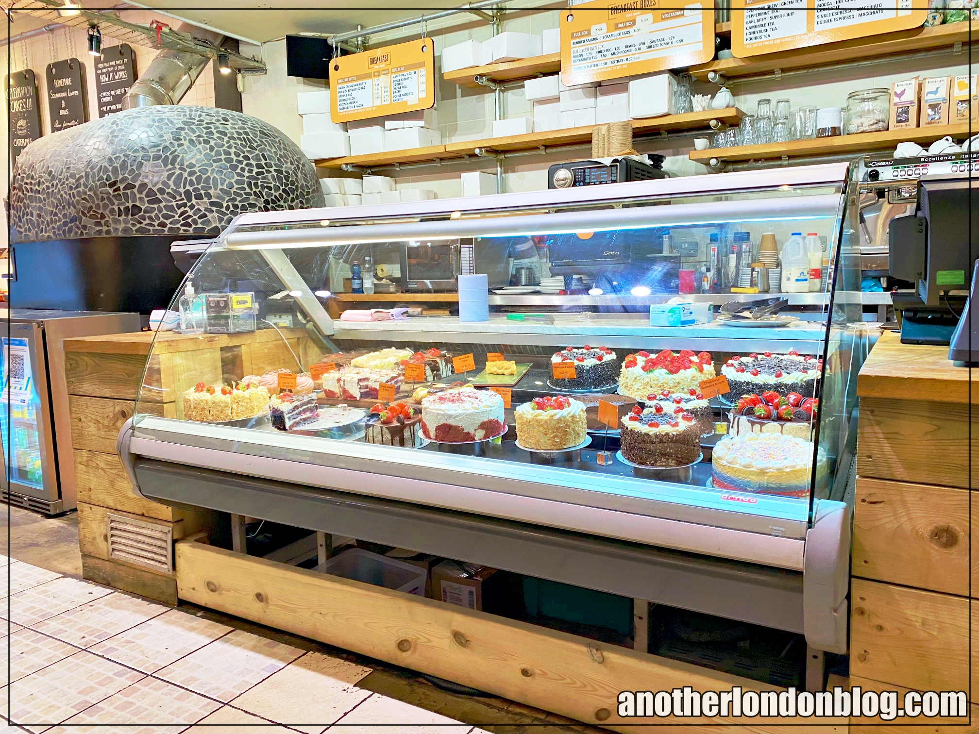 Über das Frühstück hinaus, gibt jeden Tag auch eine Vielzahl von Pasteten (sowohl klassische englische Pasteten, als auch etwa Schafskäse-Spinat-Schnecken), selbst gemachten Sandwiches oder zum Mittag auch Suppen und einfache, günstige Gerichte zu erstehen. Das Herzstück ist aber die Auswahl an Kuchen und Torten. Ihr findet hier alles vom einfachen Doughnut (ab 90p eat in) bis hin zur süßen Tortenkreation für ca. 4 Pfund. Mir hat es der Tunesische Orangenkuchen angetan: zusammen mit einer Tasse Tee oder Espresso ist das ein Träumchen. Insgesamt ist es echt schwer, sich zu entscheiden, da die Auswahl so groß ist, und auch, wenn es von außen erst einmal nicht so aussieht, die Qualität wirklich überzeugend! Schaut mal in das Menu – noch besser ist es aber, selber vorbei zu fahren.