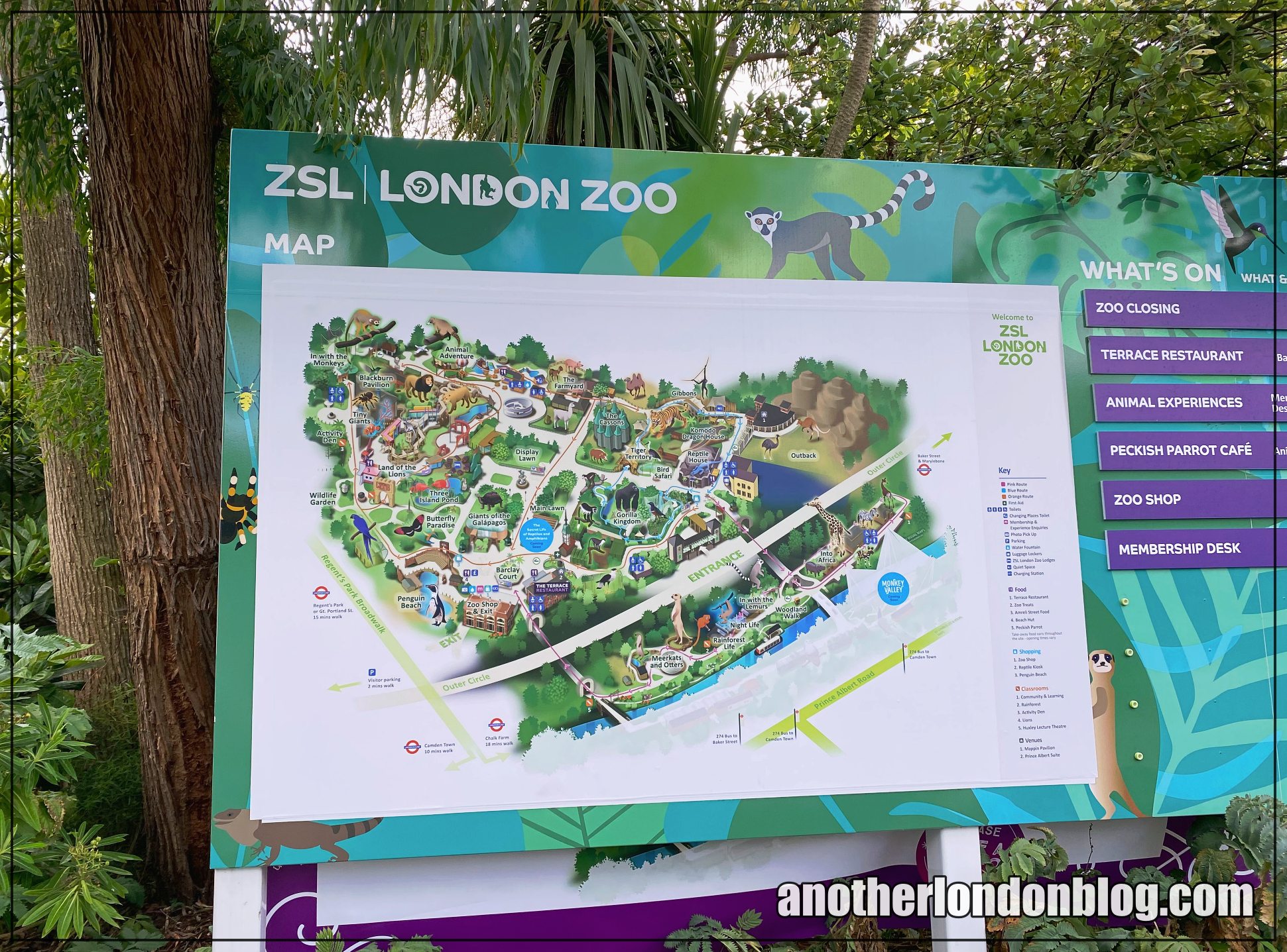 ![]() | In Camden, am Regents Parks, fußläufig vom Camden Dock erreichbar, liegt der Londoner Zoo. Er bietet jede Menge teilweise seltene Tiere (z.B. echte Komodowarane), Spielplätze und alles, was zu einem Zoo dazu gehört. Die verschiedenen Rundwege sind komfortabel farblich markiert. So kann man sich immer orientieren. (-> Komodowarane treffen Giraffen) | Der Zoo ist für Fans von Tierparks echt toll. Er ist gut gemacht, hat viele tolle Tiere und hat vor allem für jüngere Kinder den Vorteil: Man hat ein wenig Ruhe von der Stadt und dem Trubel und kann einfach mal laufen und spielen, ohne auf Autos oder andere Menschen achten zu müssen. Ein Familienticket für 4 Personen kostete 2022 im Sommer 87,50 Pfund – das ist eine stattliche Summe. Allerdings sind Zoos in Deutschland ähnlich teuer. |