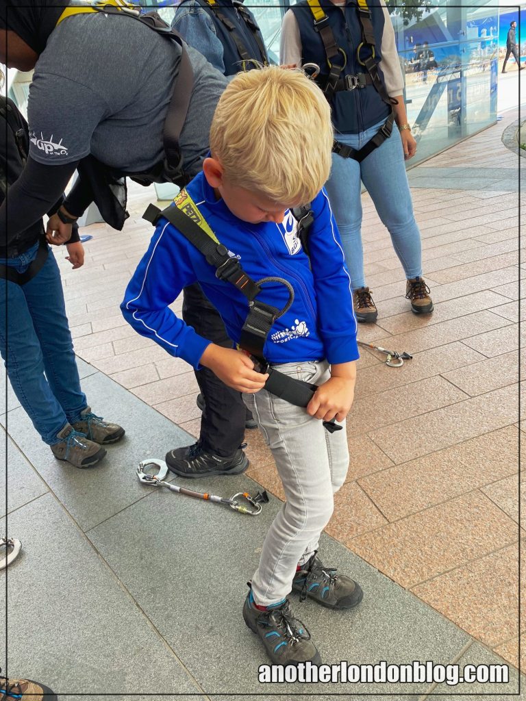 Der Aufstieg selber ist mit rudimentärer Fitness zu machen. Allein, dass der Weg zur Spitze aus dicken Gummimatten besteht, die natürlich schwingen können, ist nicht für jeden etwas. Auch, wenn der Anfang recht steil aussieht, lässt sich die Passage gut meistern. Nebenbei erhält man auch immer wieder interessante Infos, etwa zu den Docklands oder den Gebäuden rund um The O2.