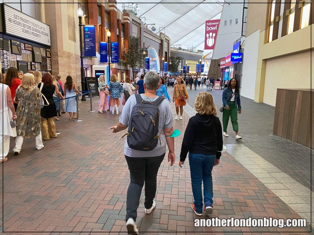Der Weg zurück führt dann durch die O2-Arena mit ihren Restaurants, Clubs und Geschäften. Eine beeindruckende Anlage.