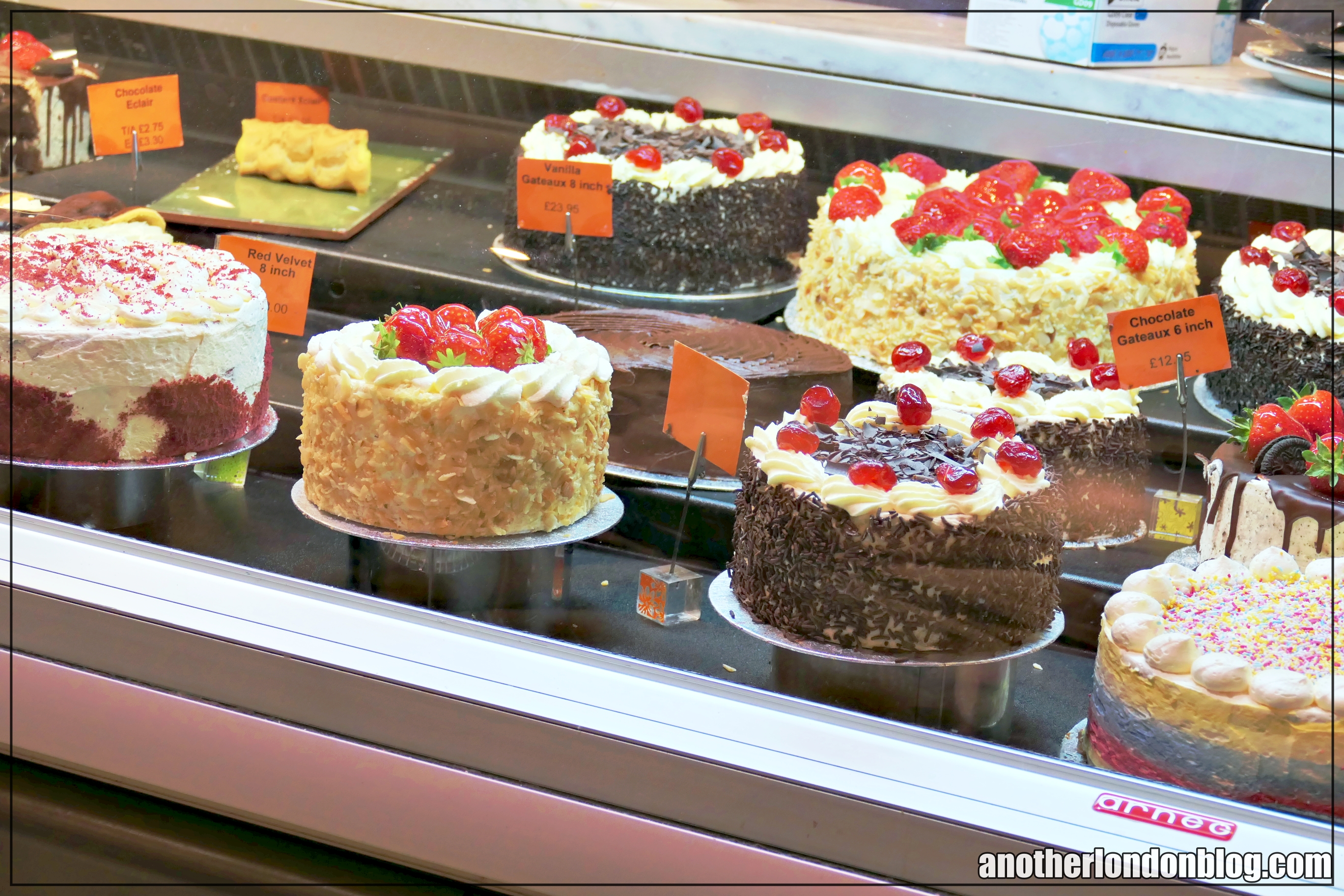 Über das Frühstück hinaus, gibt jeden Tag auch eine Vielzahl von Pasteten (sowohl klassische englische Pasteten, als auch etwa Schafskäse-Spinat-Schnecken), selbst gemachten Sandwiches oder zum Mittag auch Suppen und einfache, günstige Gerichte zu erstehen. Das Herzstück ist aber die Auswahl an Kuchen und Torten. Ihr findet hier alles vom einfachen Doughnut (ab 90p eat in) bis hin zur süßen Tortenkreation für ca. 4 Pfund. Mir hat es der Tunesische Orangenkuchen angetan: zusammen mit einer Tasse Tee oder Espresso ist das ein Träumchen. Insgesamt ist es echt schwer, sich zu entscheiden, da die Auswahl so groß ist, und auch, wenn es von außen erst einmal nicht so aussieht, die Qualität wirklich überzeugend!