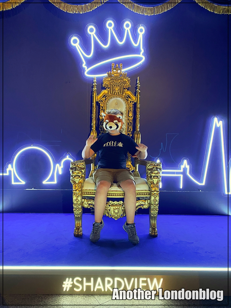 Bevor ihr nach oben fahrt und nachdem ihr wieder unten angekommen seid, wartet – wie meistens – ein Souvenirladen auf euch. Zudem könnt ihr auf dem The Shard – Thron Platz nehmen. Für ein Erinnerungsfoto ist das nur gut!