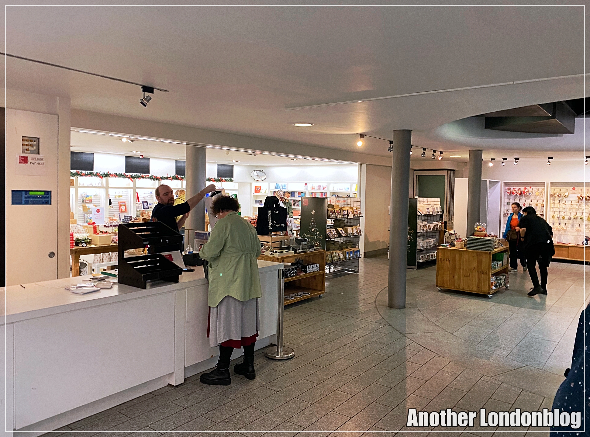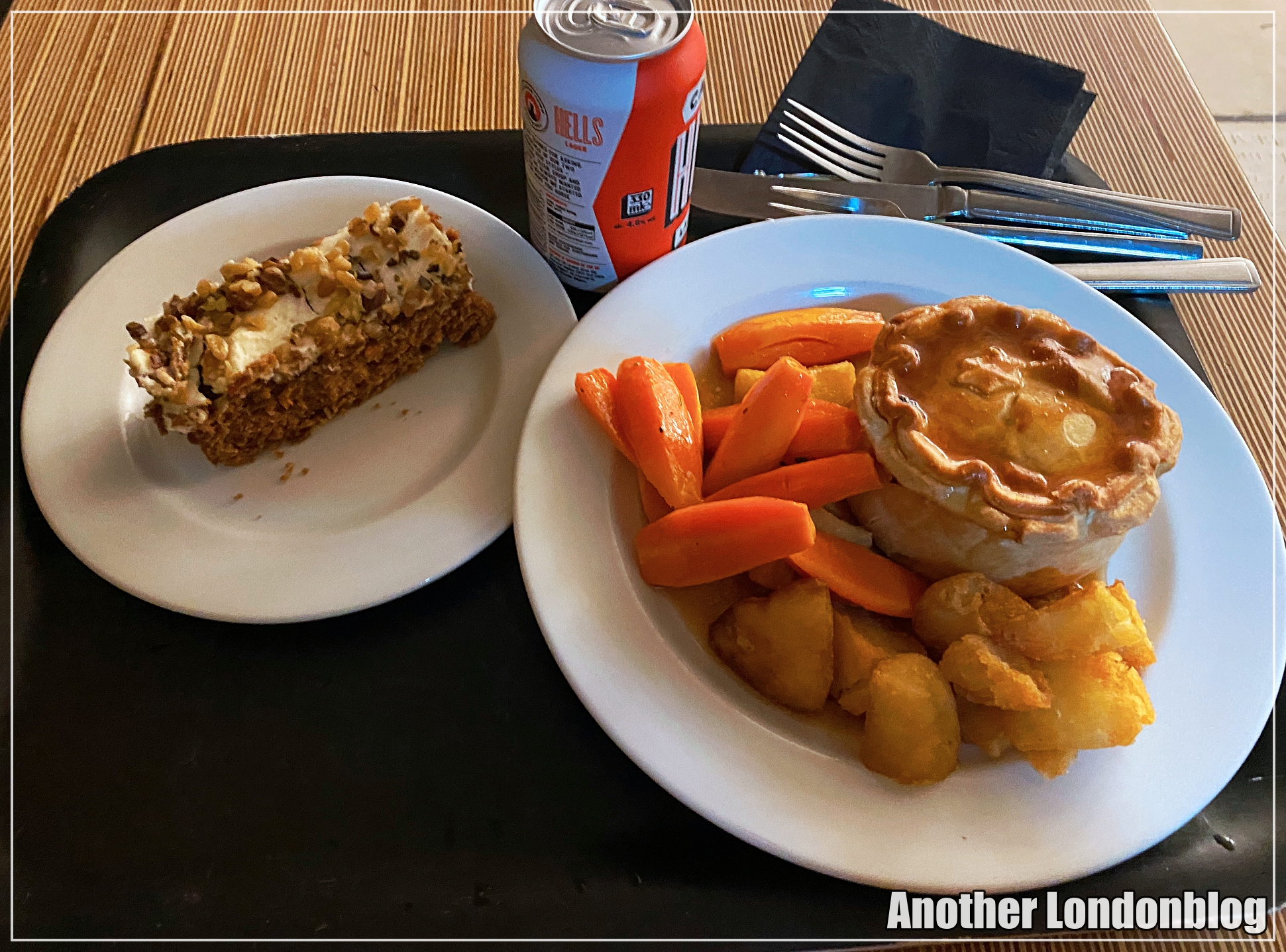 Das Café ist ein Self-Sevice-Restaurant. An der Stirnseite (nach dem Eingang links halten) bekommt ihr eine Auswahl an klassischem englischen Essen (die Pies und der Apple Crumble sind echt empfehlenswert!). Dabei wechseln die Angebote täglich und euer Essen ist in Anbetracht der Londoner Preisstruktur nicht teuer. Da ihr die Mengen selber bestimmen und die Komponenten eigens zusammenstellen könnt, rangieren die meisten Essen zwischen 5 und 20 Pfund – je nach Hunger.