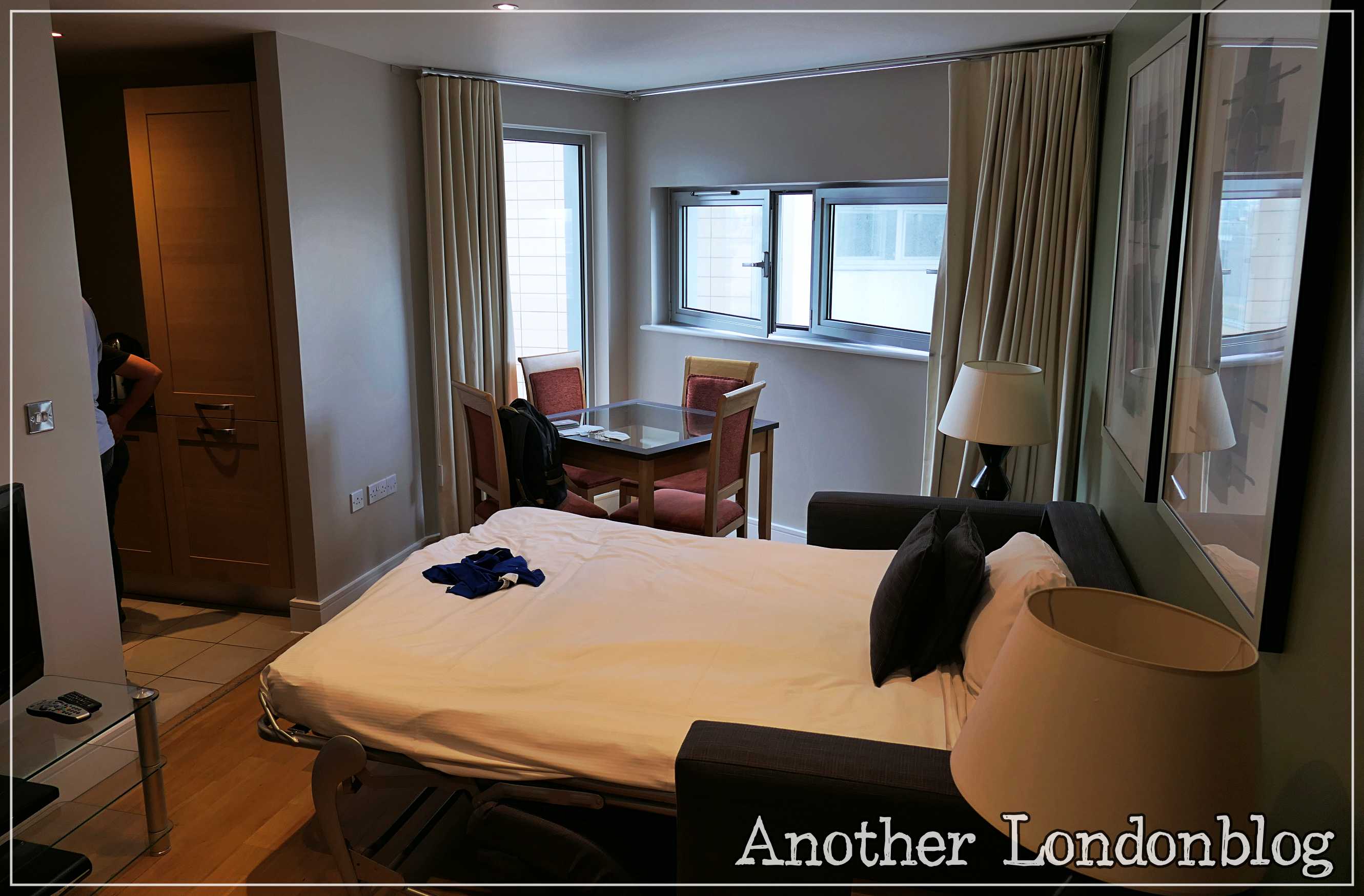 Aber zurück zu den Appartements: Die Lage war also ganz gut. Die Appartements selber sind aber qualitativ mittelmäßig ausgestattet. Vor Allem habe ich auch in London bereits deutlich bessere Betten erlebt. Das Schlafsofa für uns Eltern war recht unpraktisch und etwas durchgelegen und die zwei übereinander liegenden Matratzen der betten unserer Kinder verschoben sich immer gegeneinander, sodass die Jungs am Ende der Nacht fast auf dem Boden lagen. Gleichsam waren die Betten ziemlich schmal. Ich würde schätzen etwa 70cm. Tisch und Stühle hätten auch mal wieder einen Schraubenzieher nötig, der deren Wackeln behebt. Auch der Platz war nicht gerade üppig bemesse. Das konnte man ein wenig kompensieren, wenn immer das Sofa gut zusammengebaut wurde und alle Bettwäsche ins andere Zimmer geräumt wurde. Aber was will man bei dem Preis auch erwarten. Die Küche hingegen war ganz okay und ein wenig nach hinten versetzt. Gleiches galt für das Badezimmer. Das war für Londoner Verhältnisse wirklich geräumig und gut ausgestattet. Auch positiv hervorzuheben sind die wirklich effektiven Schallschutzfenster! Auch die in der Küche integrierte Waschmaschine hat uns gute Dienste geleistet. Wie es nun einmal so ist, wenn man mit Kindern unterwegs ist…