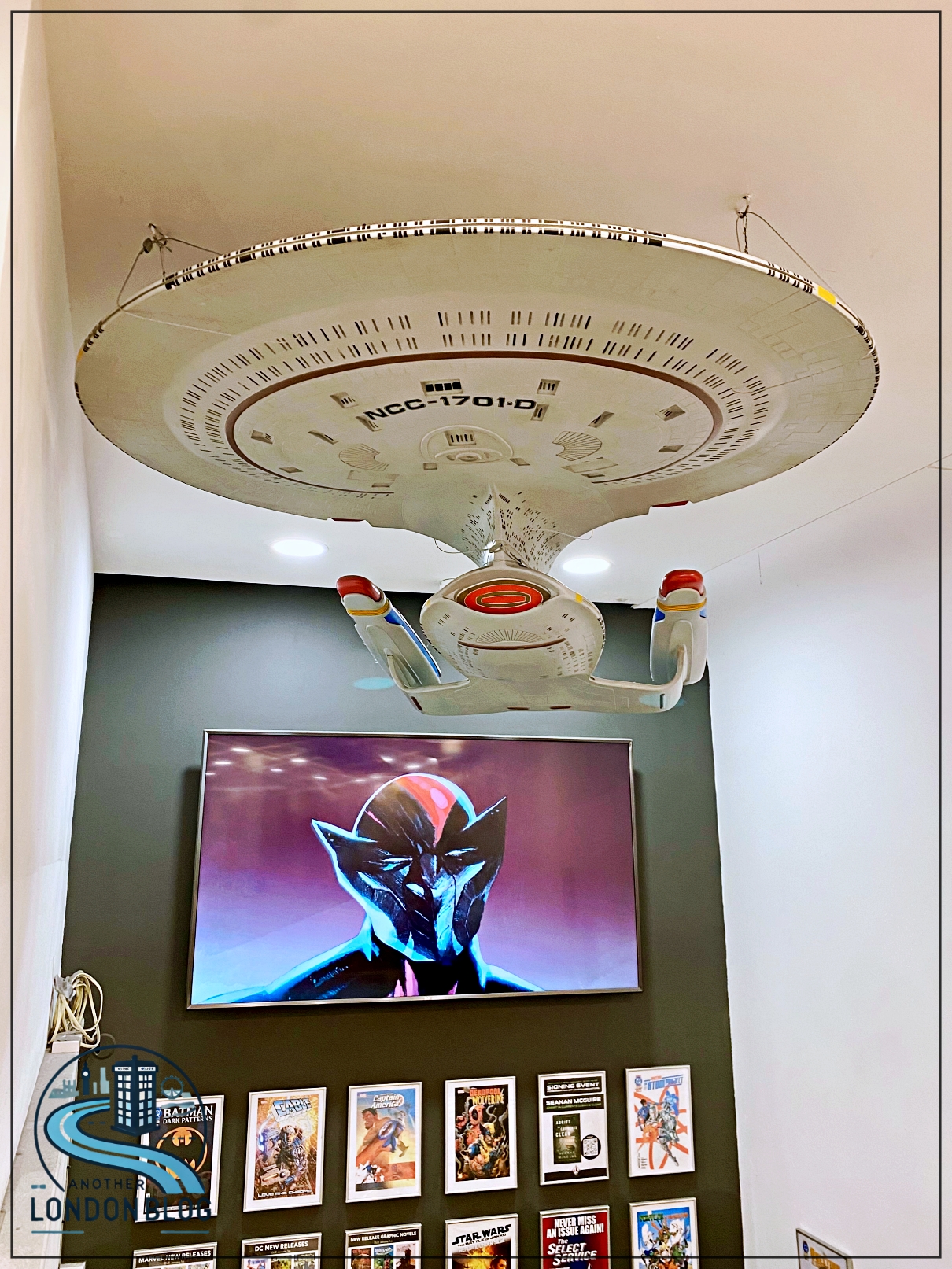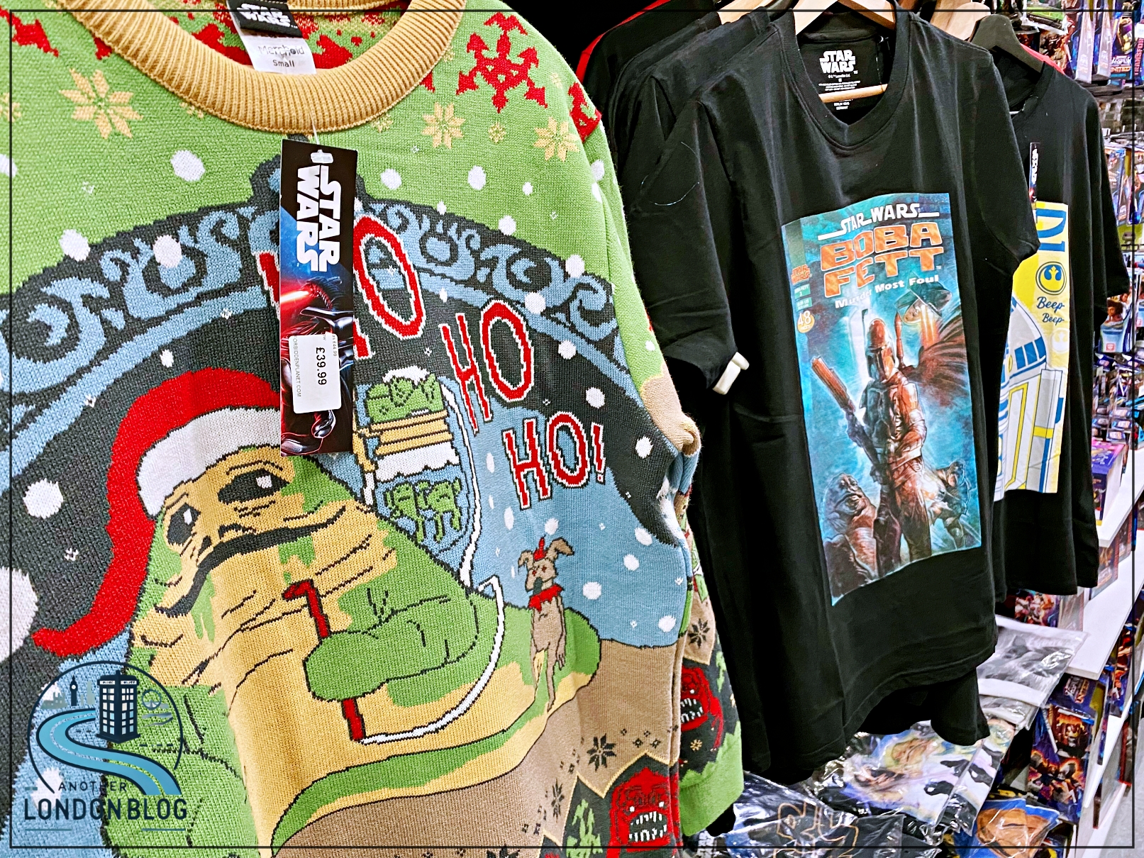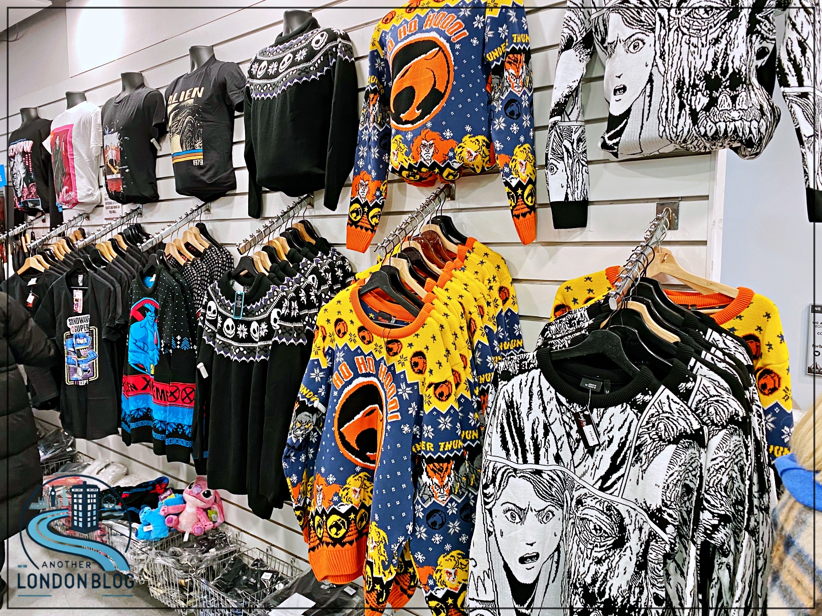 Im Erdgeschoss findet ihr aber eine Vielzahl von Collectibles, Spielzeugen oder Fanwear rund um alle möglichen Fantasy-, Scifi- oder Comic-Serien. Ob nun einen Jabba The Hut – Weihnachtspullli, ein Schallschraubenzieher von Dr. Who oder einen Helm von Iron Man: Ihr findet es. Die Themen sind echt breit gestreut: Marvel, Star Wars, Star Trek, Dr. Who, diverse Disney- Specials (z.B. Nighmare before Christmas), Herr der Ringe, Naruto, Harry Potter, Demon Slayer oder Warhammer…. zu Alldem findet ihr verschiedenste Devotionalien.