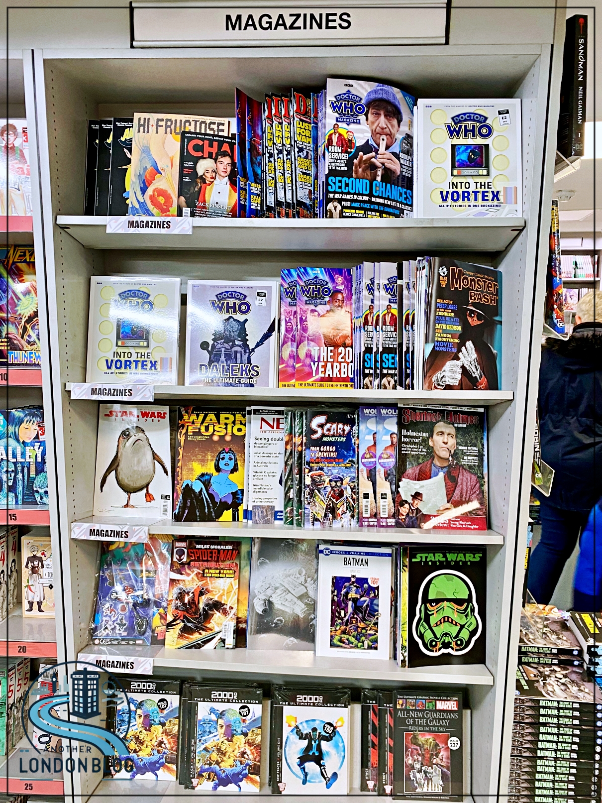 Während der Shop in Camden vornehmlich Graphic Novels, Mangas und Comics feil bieten soll, gestaltet es sich beim Megastore etwas anders. In der Shaftsbury Ave gibt es natürlich auch eine sehr großzügige und ausladende Abteilung für alles aus Papier – das gesamte Untergeschoss besteht daraus. Hier könnt ihr euch laaange aufhalten und die Regalmeter nach spannenden Ausgaben durchforsten.